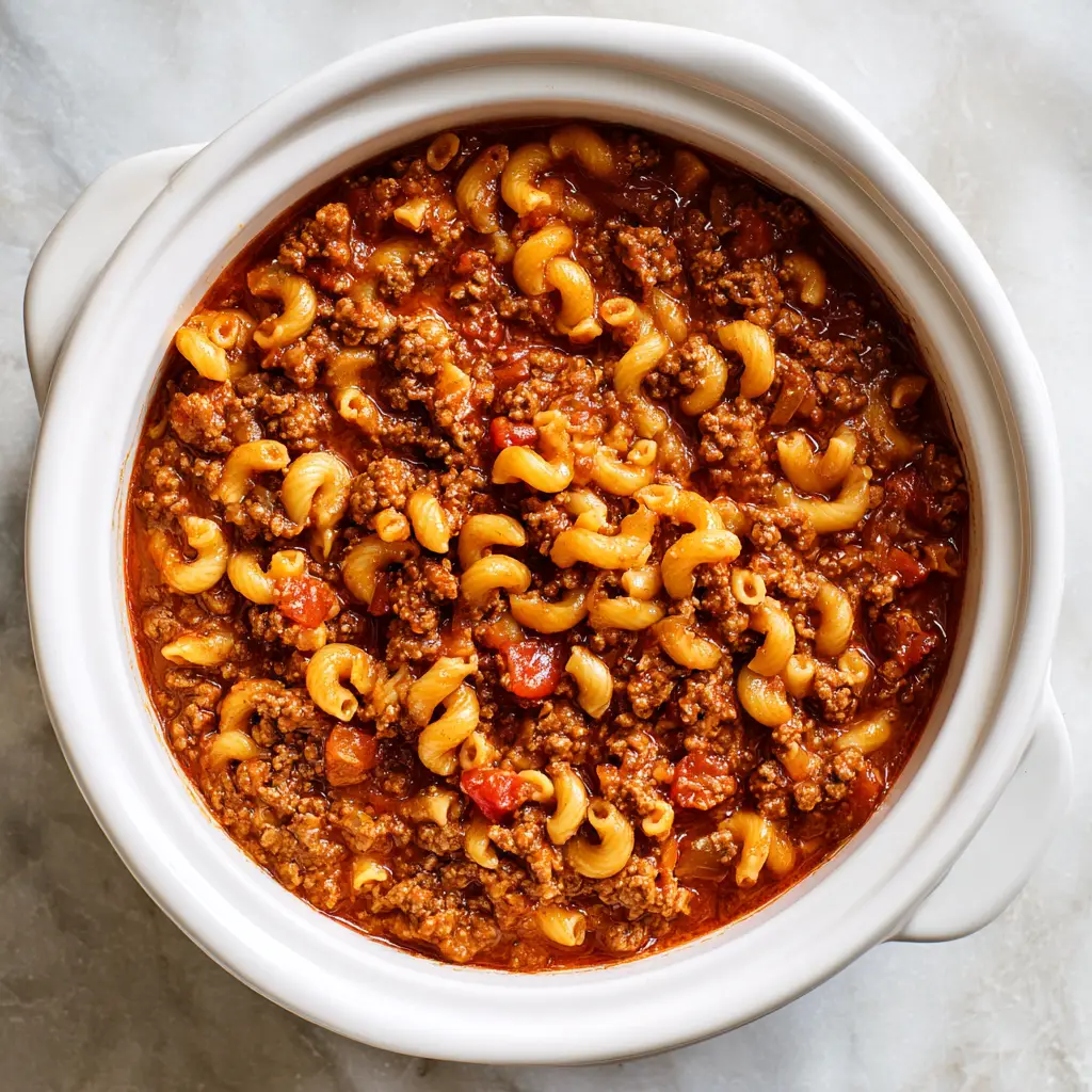 If you have been searching for a dinner that effortlessly balances convenience with a thick, stew-like texture, this is it. We capture that iconic, high-angle bowl presentation: perfectly cooked elbow macaroni mixed with deeply browned ground beef crumbles. Everything is beautifully enveloped in a hearty, reddish-brown tomato sauce that clings to the pasta.