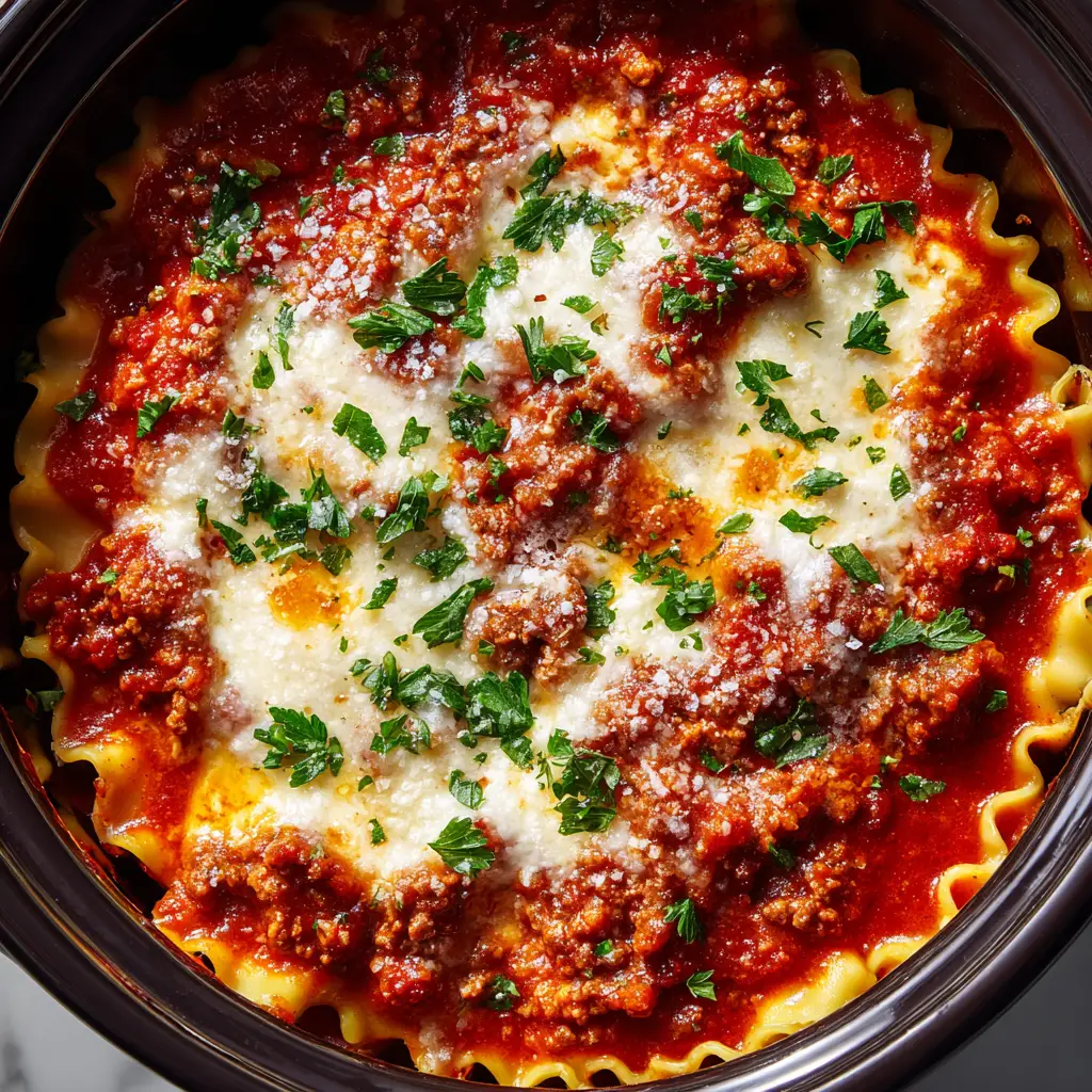 Ultimate Cheesy Crockpot Lasagna with Thick Meat Sauce