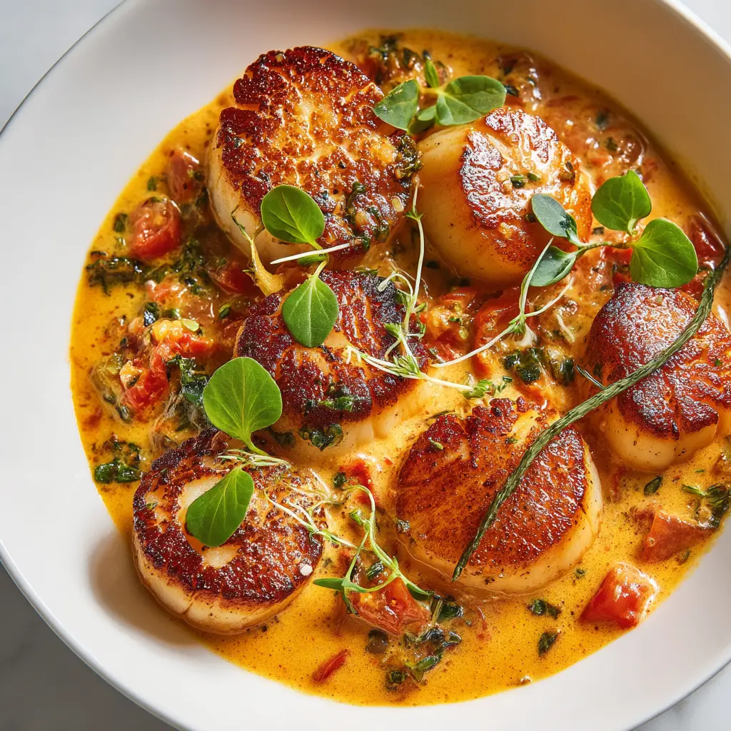 - Return the seared scallops and any juices to the skillet. Gently toss to coat in the sauce. Garnish with fresh parsley and serve immediately.